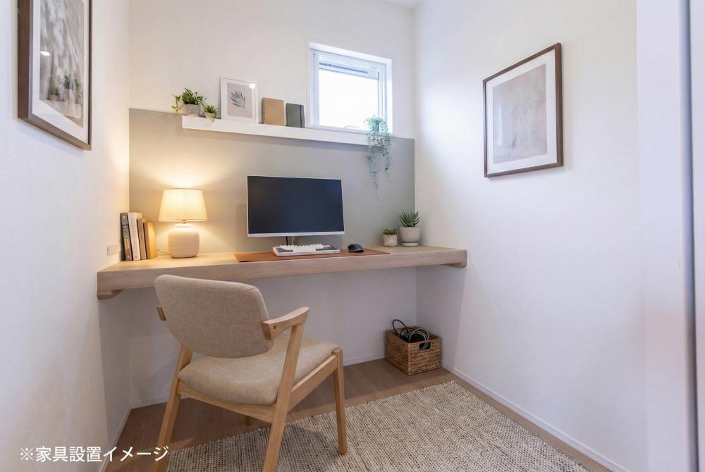 LDK横の書斎や大きな収納など「暮らしやすさ」を考え取り入れた間取り設計。